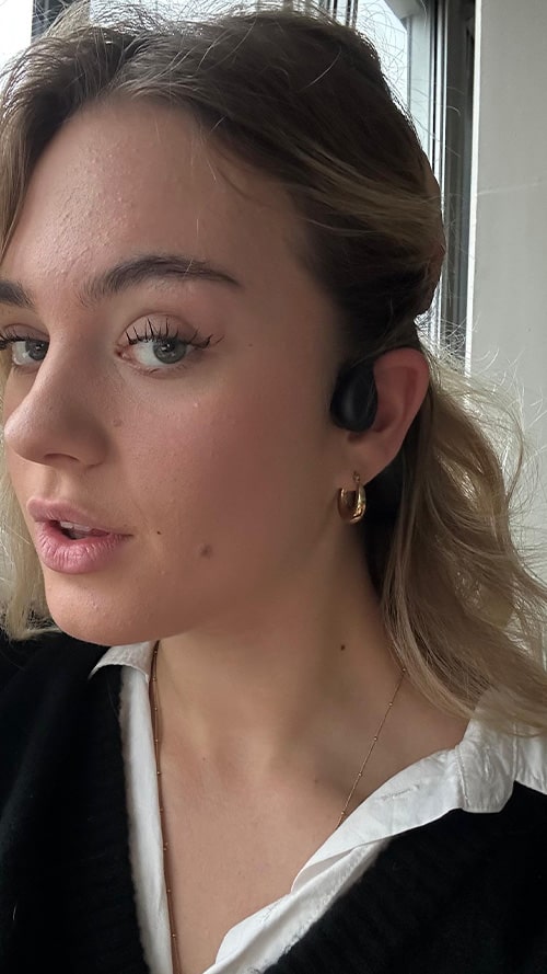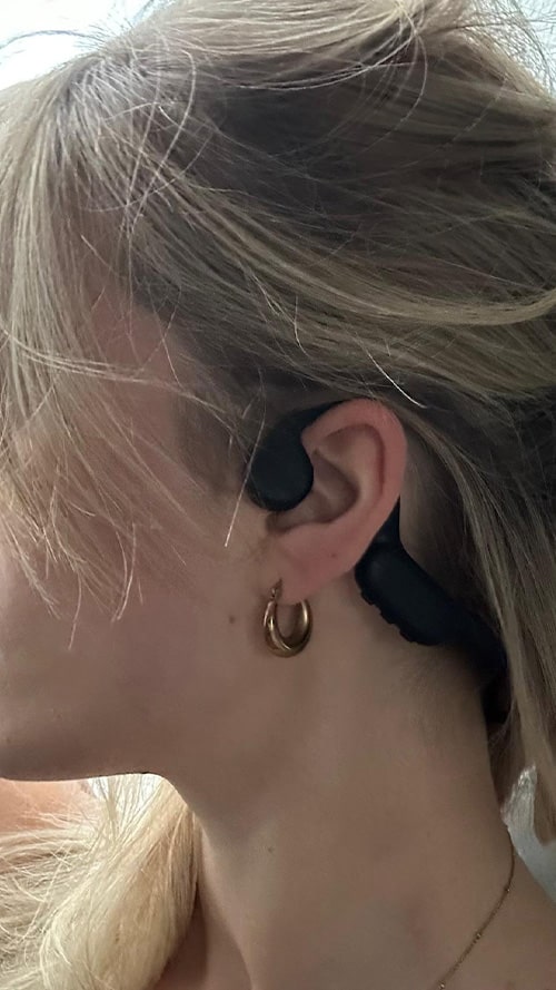 The big advantage? Your ears stay open, so you can still hear your surroundings – like traffic, people, or warning signals – while listening to music or podcasts.