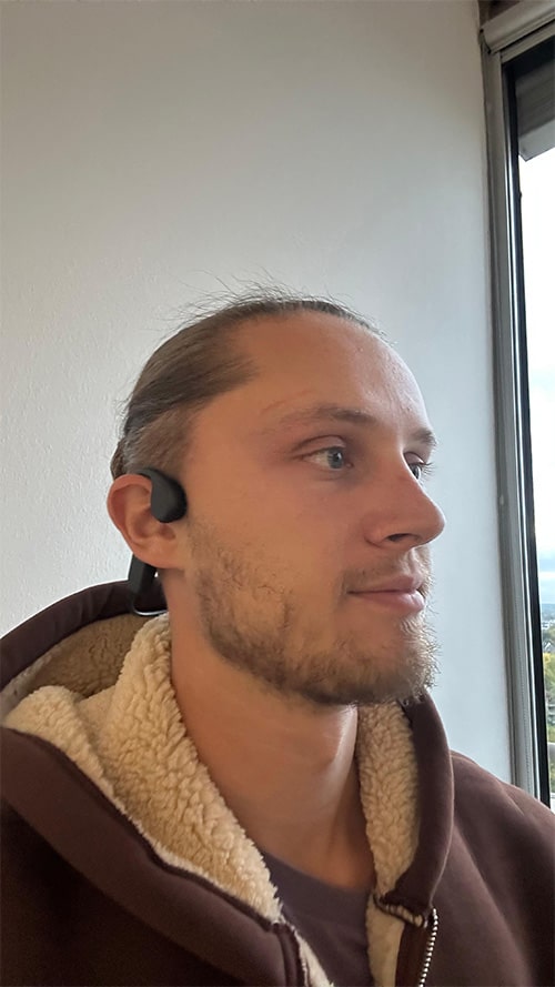 Instead of sending sound through the eardrum, they transmit vibrations directly through the bones of your skull to the inner ear. That means the headphones sit just in front of your ears (not inside them) and send sound through your cheekbones.